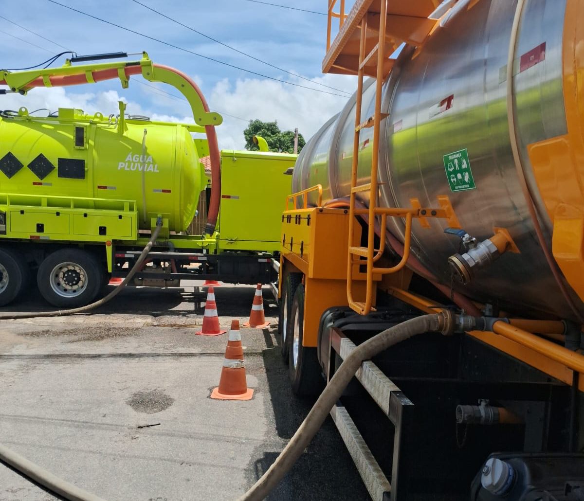 O serviço é executado por equipes técnicas com o apoio de caminhão de sucção a vácuo, utilizado na retirada de resíduos das tubulações, e caminhão-pipa, responsável pelo jateamento de água sob pressão para limpeza interna das galerias pluviais, restabelecendo a capacidade de escoamento do sistema.