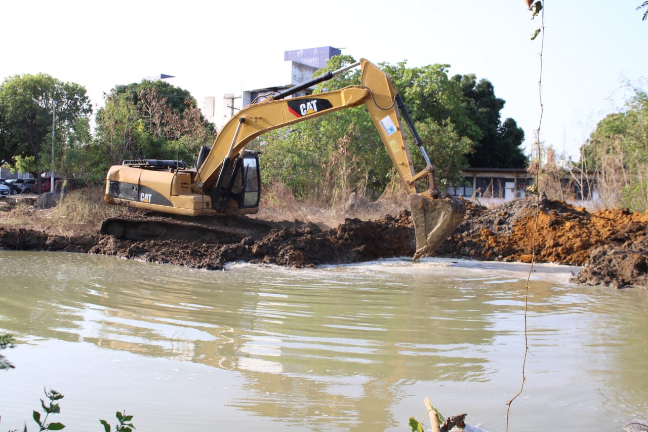 Entre os locais contemplados está a lagoa de captação situada nas proximidades do Hospital Regional Tarcísio Maia. Responsável por receber águas pluviais provenientes de diversos bairros, o reservatório passa por serviços de limpeza, aprofundamento e alargamento, visando ampliar sua capacidade de escoamento e garantir maior eficiência do sistema de drenagem urbana. A medida é necessária diante do descarte irregular de resíduos e entulhos nas margens, prática que tem ocasionado assoreamento e comprometido o desempenho da infraestrutura de captação.