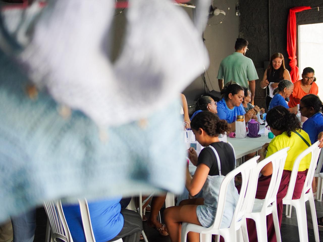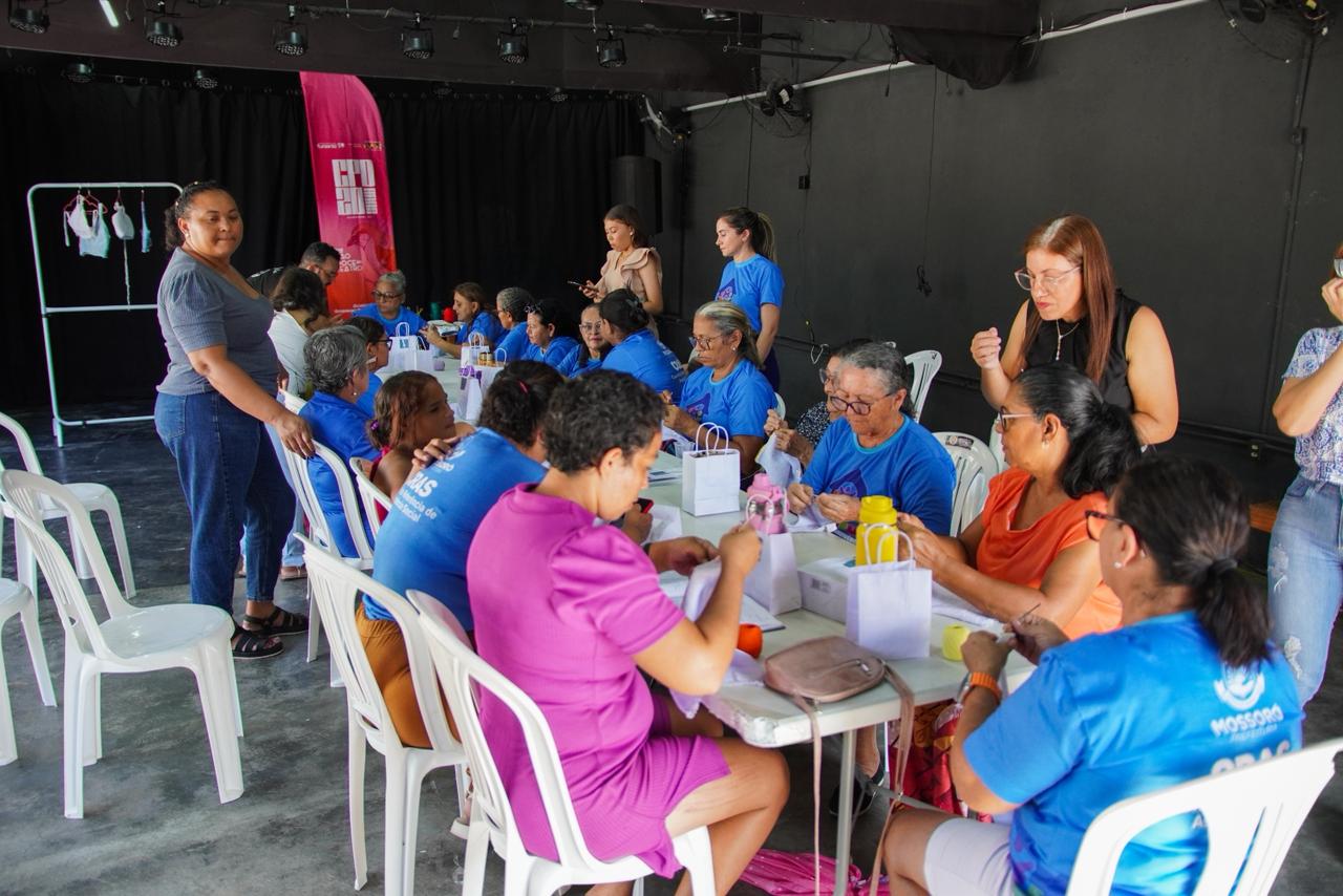 Mulheres e idosas que são assistidas no Centro de Referência de Assistência Social (CRAS) do Sumaré participaram de uma oficina de crochê, nesta sexta-feira (20), no Espaço Cultural Teatro de Quintal. A ação é uma parceria da Prefeitura de Mossoró com a Companhia Pão Doce de Teatro.