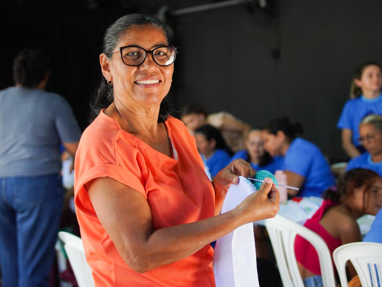 “Aconteceu hoje aqui no Espaço Cultural Cia Pão Doce de Teatro, mais uma parceria com os nossos CRASs. Hoje recebemos a equipe do Sumaré com as mulheres e idosas do Serviço de Convivência e Fortalecimento de Vínculo para participar de uma oficina de crochê. Vemos isso como uma ótima iniciativa, onde conseguimos ofertar novas oportunidades de aprendizado para as nossas mulheres”, declarou Lucas Fernandes, coordenador do Serviço de Convivência e Fortalecimento de Vínculo.