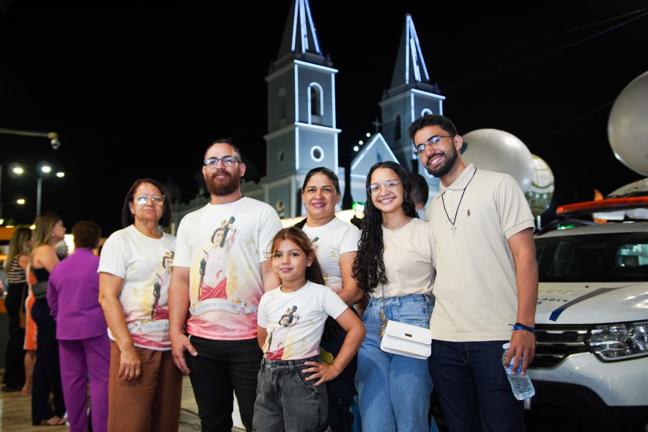 A chegada da imagem à Catedral foi o ponto alto da noite. A Praça Vigário Antônio Joaquim, completamente tomada por fiéis, recebeu a padroeira sob aplausos, preces e grande emoção. A imagem foi acolhida pelo bispo diocesano dom Francisco de Sales; pelo pregador da noite de abertura, dom Magnus Henrique, bispo da Diocese de Crato; pelo pároco e coordenador-geral da festa, padre Antoniel; pelo vigário paroquial, padre José Victor; além de diversos sacerdotes das paróquias de Mossoró.