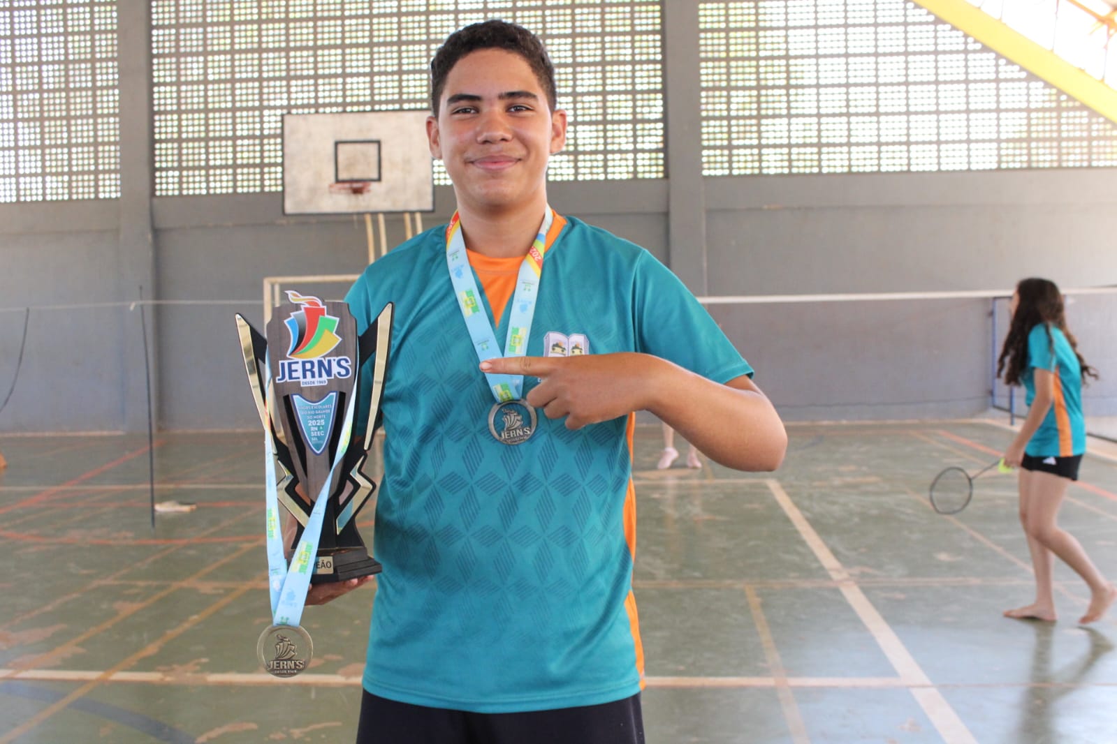 Orgulhosos com as conquistas, os alunos falam da importância dos resultados nos Jerns. “Antes eu jogava handebol aqui na escola e quando chegou o badminton, logo me interessei e gostei muito. Estamos nos sentindo muito felizes porque fomos campeões, trouxemos três troféus para a escola e também porque nossa escola fica aqui dentro do mato e agora a gente vai se tornar conhecido”, relatou Isaque Moreira Rodrigues, 14 anos, aluno do 8º ano e campeão de badminton nos Jerns 2025, etapa local.