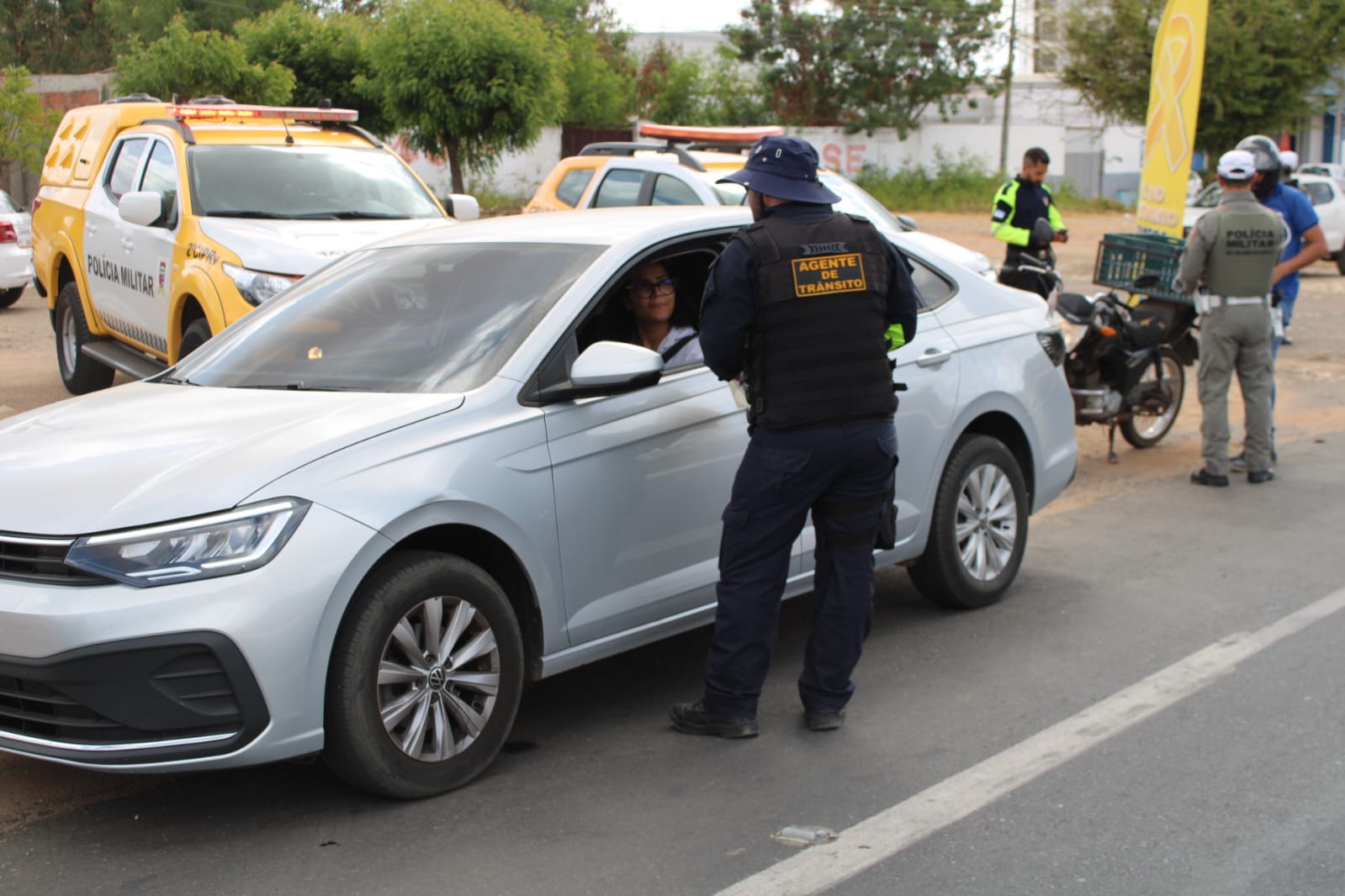 A Prefeitura de Mossoró, por meio da Secretaria de Segurança, Defesa Civil, Mobilidade Urbana e Trânsito (Sesdem), realizou, na manhã desta sexta-feira, mais uma importante ação de conscientização voltada para a segurança viária. A equipe promoveu uma blitz educativa na avenida Lauro Monte, nas proximidades da rotatória do Hotel Thermas, reforçando a prevenção de acidentes e o respeito no trânsito. A iniciativa contou com agentes de trânsito do município, apoio da Polícia Rodoviária Federal (PRF) e do Departamento de Policiamento Rodoviário Estadual (DPRE).