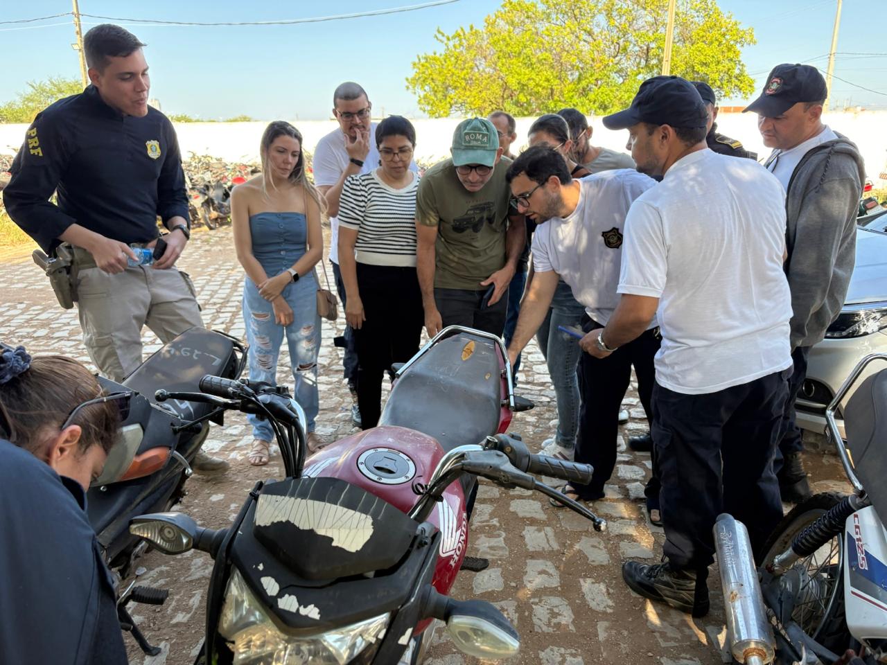 Agentes de trânsito do município participaram, nesta segunda-feira (22), de mais uma etapa da capacitação voltada ao Programa de Nivelamento Simplificado em Enfrentamento às Fraudes Veiculares (PRONISI). A formação contou com aulas teóricas pela manhã, realizadas na sede da Universidade Potiguar (UnP), e, no período da tarde, atividades práticas no espaço destinado ao depósito/pátio do Departamento Estadual de Trânsito (Detran) em Mossoró. O treinamento foi ministrado por policiais rodoviários federais da PRF.