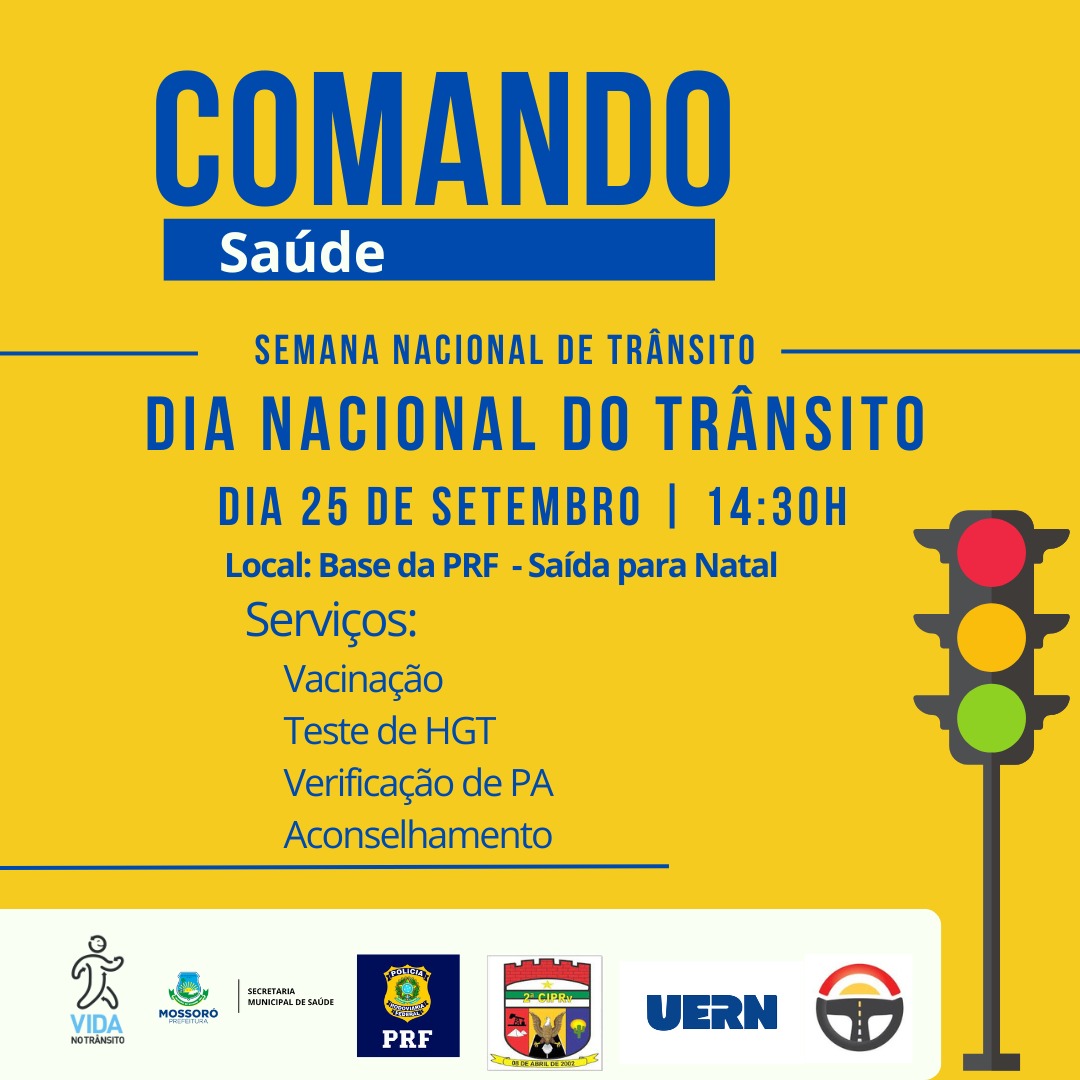 Em alusão à Semana Nacional do Trânsito, será realizado nesta quinta-feira, 25, às 14h30, o “Comando Saúde”, uma ação integrada que reunirá diferentes instituições com foco na saúde e segurança da população. A atividade acontecerá na base da Polícia Rodoviária Federal, na saída para Natal, e contará com atendimentos gratuitos voltados aos motoristas e ao público em geral.