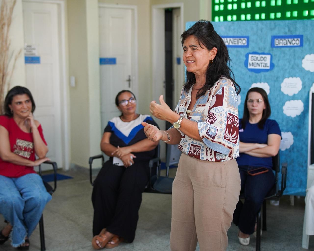 A ação contou com um momento de fala abordando sobre “O que é saúde mental na coletividade”, práticas Integrativas com o apoio da equipe da Secretaria de Saúde, momento de relaxamento e exercícios de respiração.