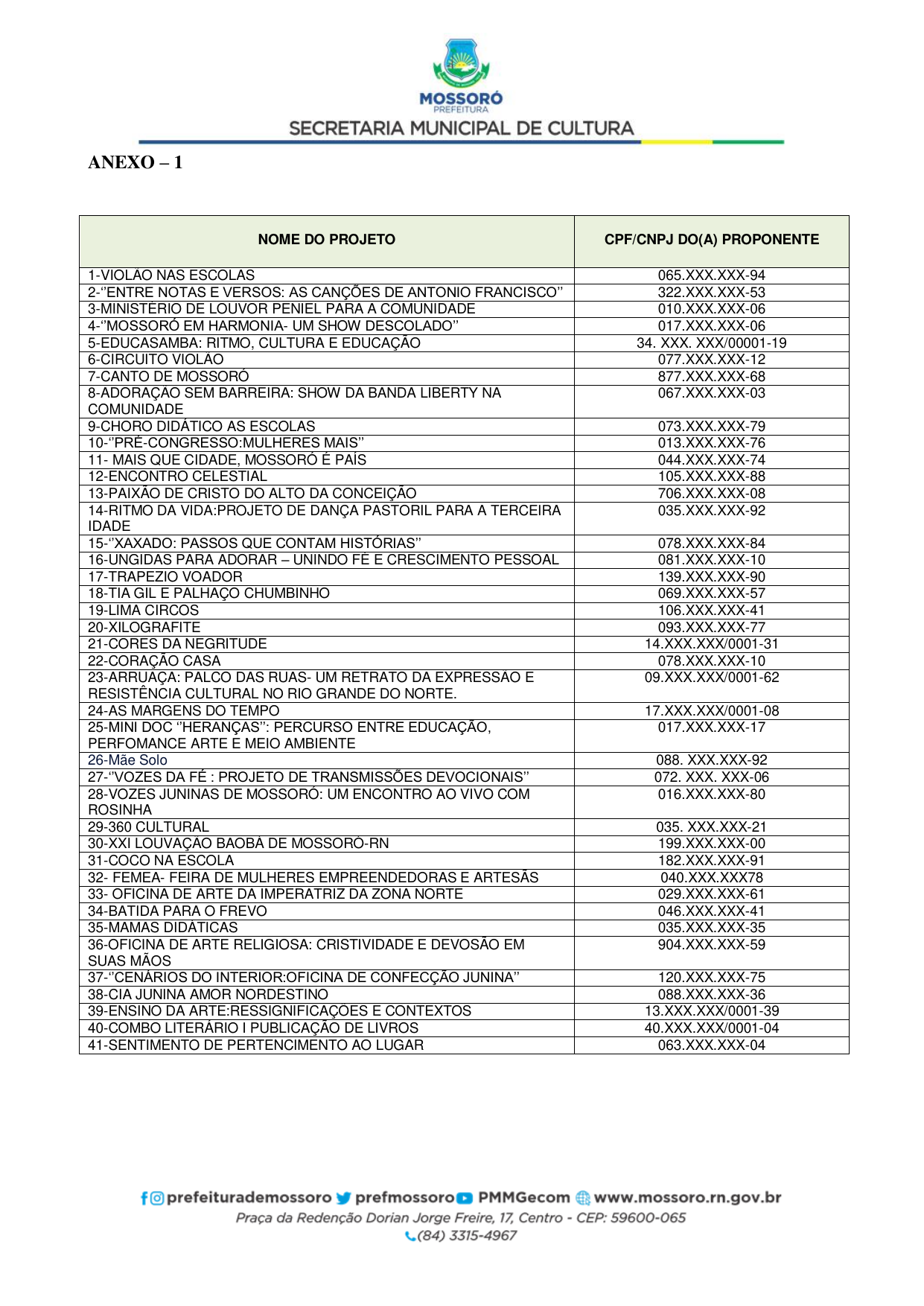 A Secretaria Municipal de Cultura convocou os proponentes inadimplentes com a prestação de contas referente ao Prêmio Maurício de Oliveira – Edição 2023 para regularizar a situação. A convocação está publicada no Diário Oficial de Mossoró (DOM), edição de quinta-feira, 4 de setembro de 2025.