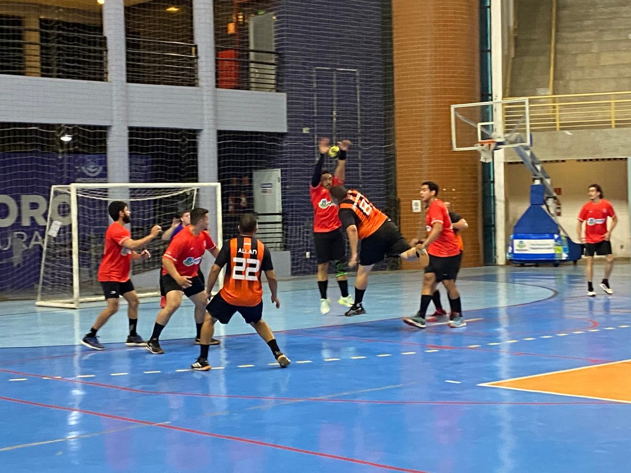 Enquanto a bola rolava nos campos, com o futebol, o Ginásio Pedro Ciarlini recebia partidas de handebol e basquete, movimentando a noite com equilíbrio e bons desempenhos coletivos.