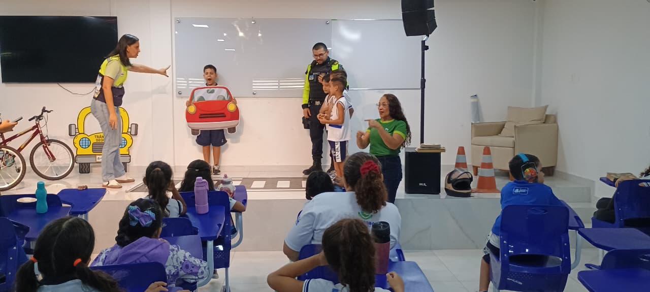 A Prefeitura de Mossoró, por meio da Secretaria Municipal de Segurança, Defesa Civil, Mobilidade Urbana e Trânsito (Sesdem), realizou na manhã desta quarta-feira (8) mais uma atividade do projeto “Pequenos no Trânsito, Grandes na Vida”. A ação aconteceu no auditório da Igreja Pão da Vida e contou com a participação de alunos da Escola Municipal Professor Manoel Assis.