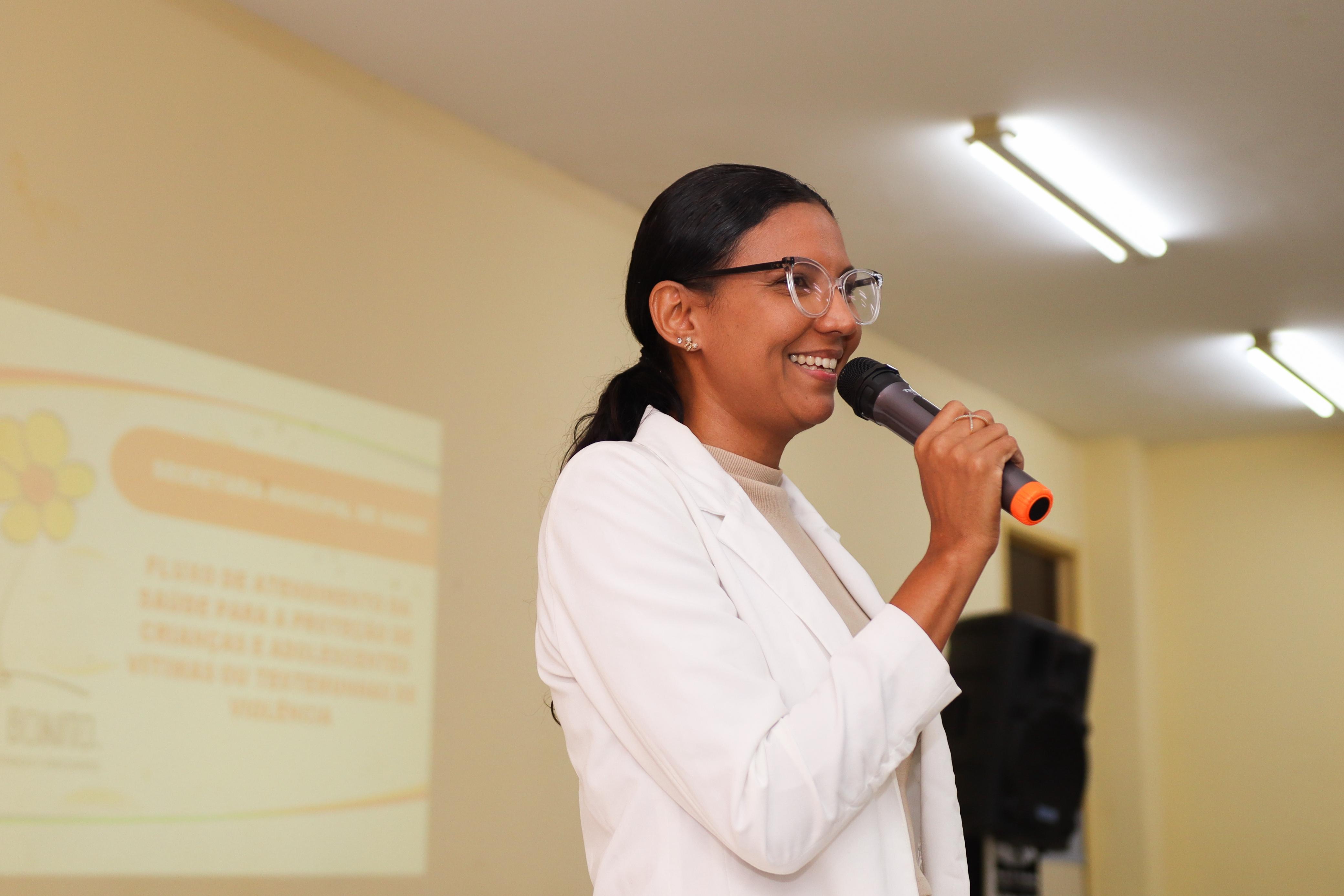 "Apresentamos o fluxo de atendimentos da rede, contextualizando um pouco sobre sua construção. Por meio disso, buscando tirar dúvidas, esclarecer sobre essa rede que envolve a urgência, a emergência, a atenção primária, a atenção especializada. Destacamos como o profissional deve encaminhar o caso, qual é o caminho que ele tem que percorrer para que essa criança seja atendida na sua integralidade", informou Janielly Mendonça, assistente social e coordenadora da Política da Saúde da Criança e do Adolescente.