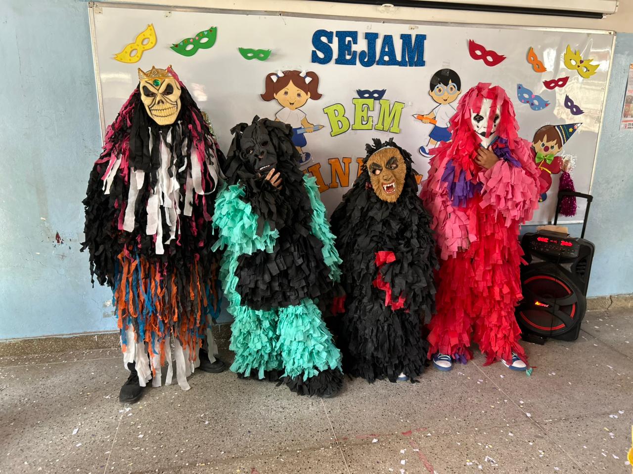 Com orientação dos professores, os alunos usaram e abusaram da imaginação para realizarem o baile de carnaval nas unidades da rede municipal