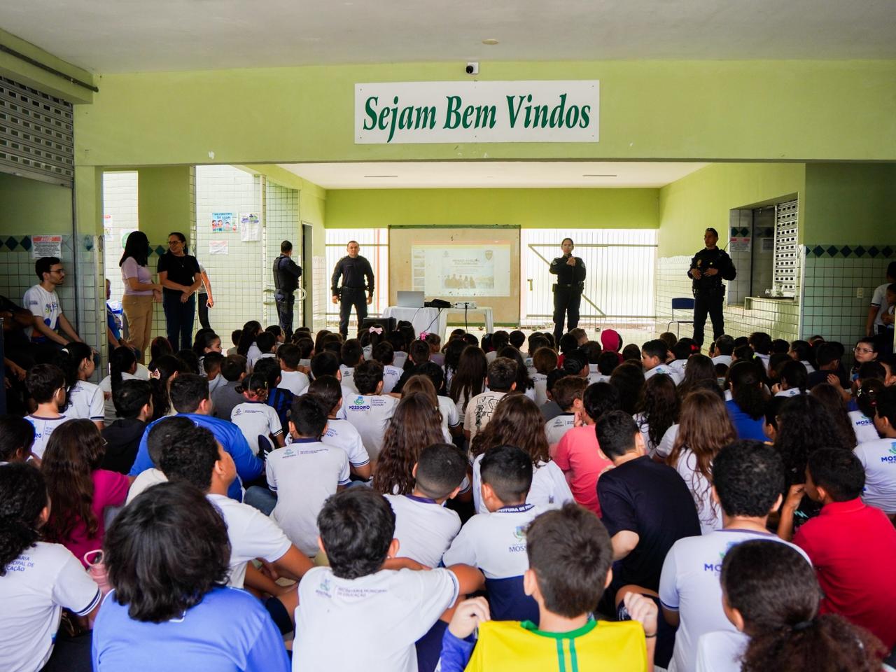 Na manhã desta terça-feira, alunos da Escola Municipal Raimundo Fernandes, no bairro Santo Antônio, receberam agentes da Ronda Escolar da Guarda Civil Municipal (GCM) que levaram informações importantes sobre a prevenção às violências nas unidades de ensino. “Estamos aqui hoje para mostrar às crianças a importância dessa temática, esclarecendo sobre as causas e as consequências que levam ao bullying, e essa conscientização se estende também aos professores e às mães e pais dos alunos”, detalhou a subinspetora da GCM, Teresa.