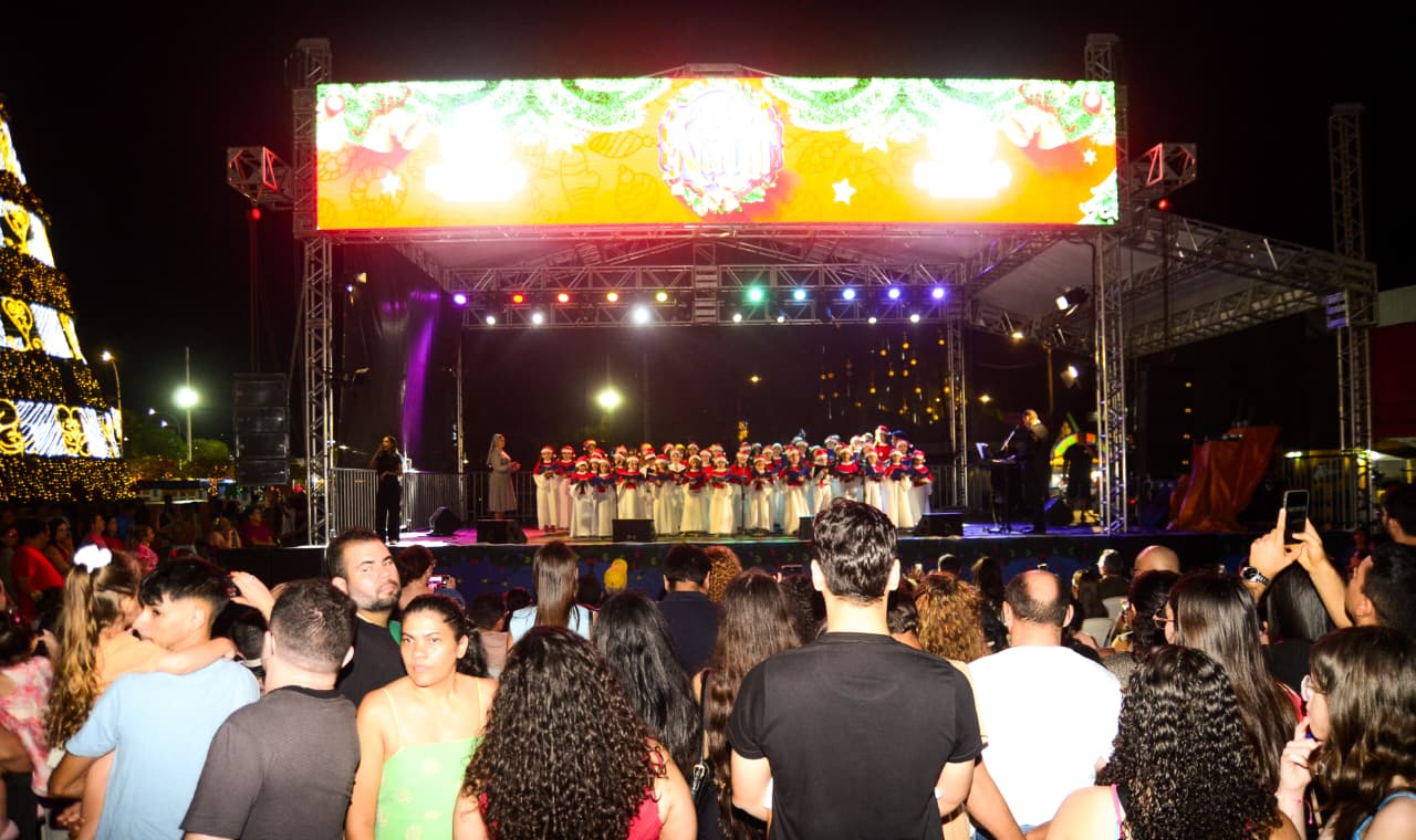 A noite de domingo (7) foi especial para os mossoroenses e visitantes no projeto “Estação Natal”, com a apresentação da Escola de Música e Artes Daulino Lima, do Coral Louvor dos Pequeninos e do Grupo Vocal Mãe Clara com os espetáculos que trouxeram músicas marcantes e alusivas à data mais especial do ano.