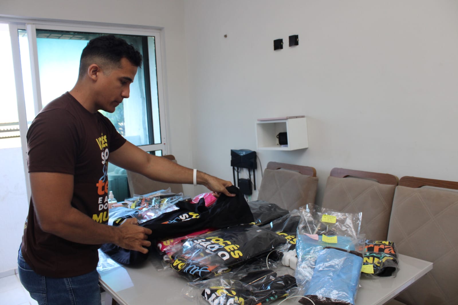 “Fiquei desempregado recentemente e tive a ideia de fazer camisas personalizadas para o evento. Além das camisas, estou vendendo também pulseiras com LED e bonés. No momento, a gente está fazendo encomendas e também estamos com um estoque para poder retirar no evento”, comentou Maxuel Castro.
