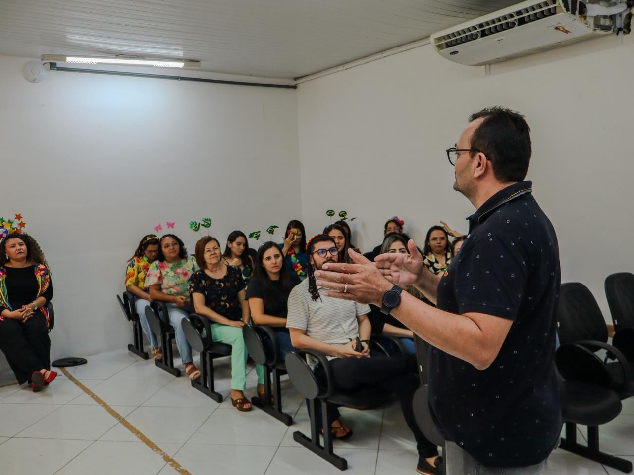 Servidores da Secretaria Municipal de Gestão e Desenvolvimento de Pessoas (Segepe) e do Instituto Municipal de Previdência Social dos Servidores de Mossoró (Previ/Mossoró) participaram na manhã desta sexta-feira (13) de uma ação do projeto “Movimenta Servidor”. A atividade contou com ginástica laboral em ritmo de carnaval, alongamentos, palestra sobre autocuidado no ambiente de trabalho.