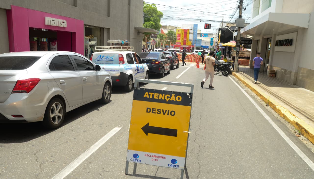 Obra da CAERN provoca obstrução parcial e exige atenção redobrada no Centro