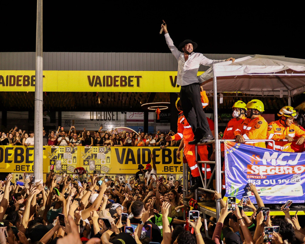 “Eu estou muito feliz de iniciar o São João aqui em Mossoró. Eu tenho certeza que a gente vai carregando uma energia ótima para todas as cidades que a gente vai passar. Mossoró já é uma tradição, tem um São João lindo e um dos maiores também. Estar aqui com vocês a cada ano para mim é uma honra. Então, muito obrigado a vocês, está uma noite linda. O Léo Foguete já cantou e agora eu vou cantar também. Estava uma galera aqui no camarim testando coisas que a gente vai fazer no show, inusitadas. Tomara que dê certo. Tomara que funcione. Mas hoje com certeza vai ser uma noite bem especial”, enalteceu.
