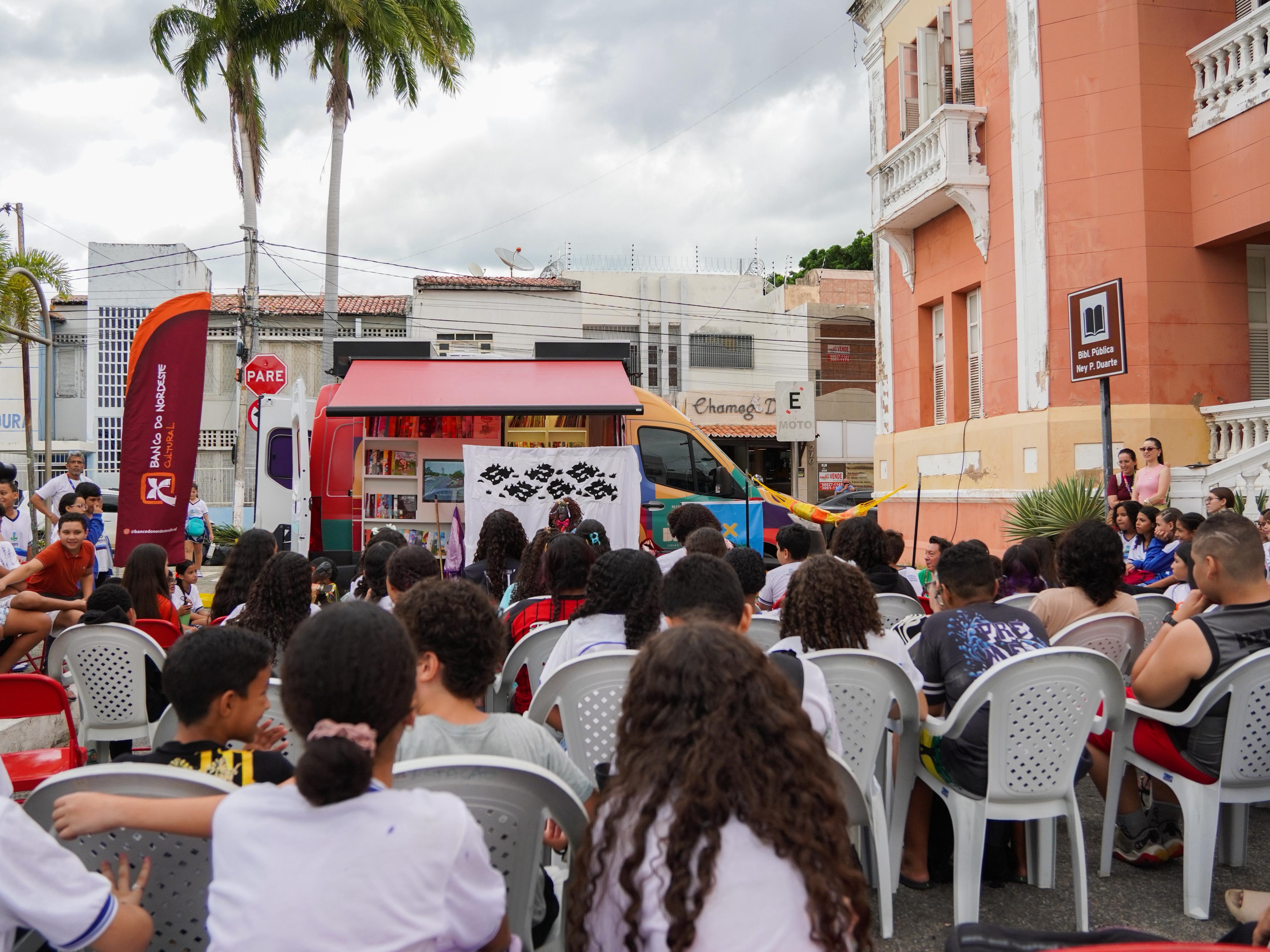 Na Praça da Redenção, os estudantes de escolas públicas conheceram mais sobre a nossa história e cultura. Ainda ao ar livre, eles participaram de atividade com grupo de teatro, enaltecendo a leitura, promoção de novos leitores, arte e busca pelo conhecimento.