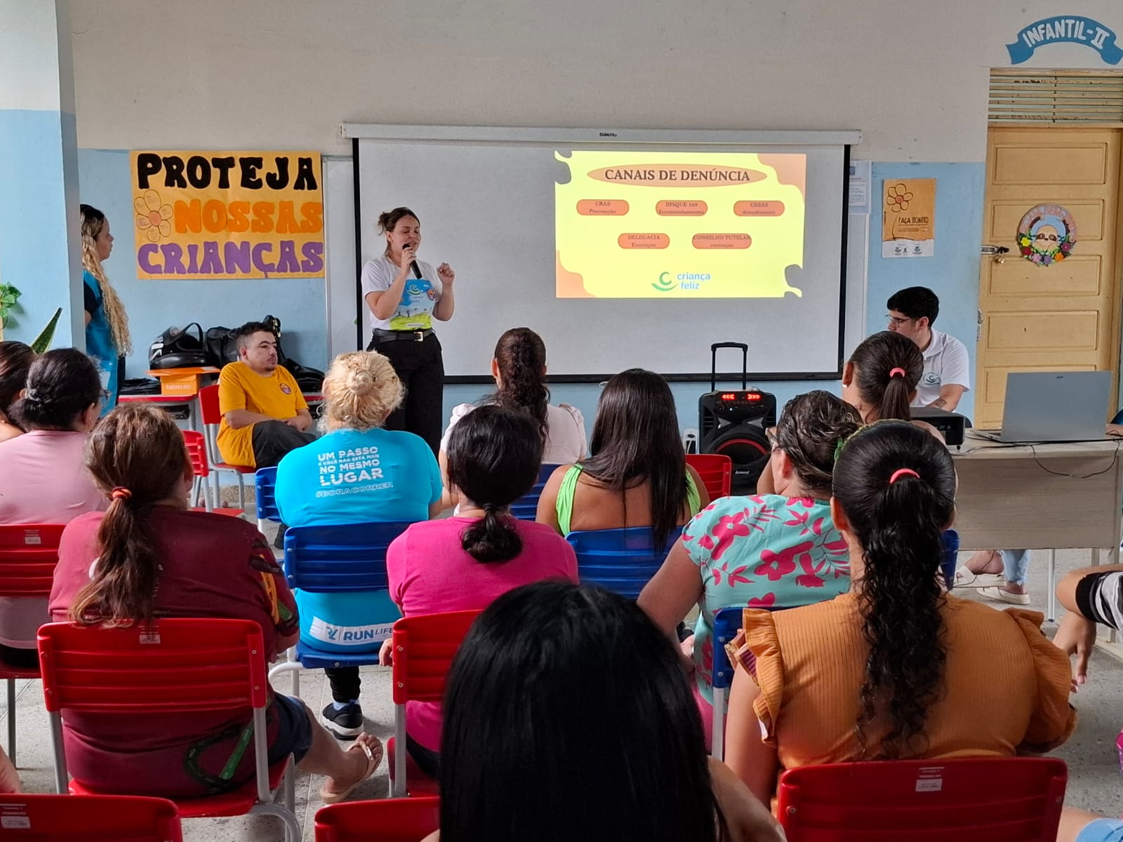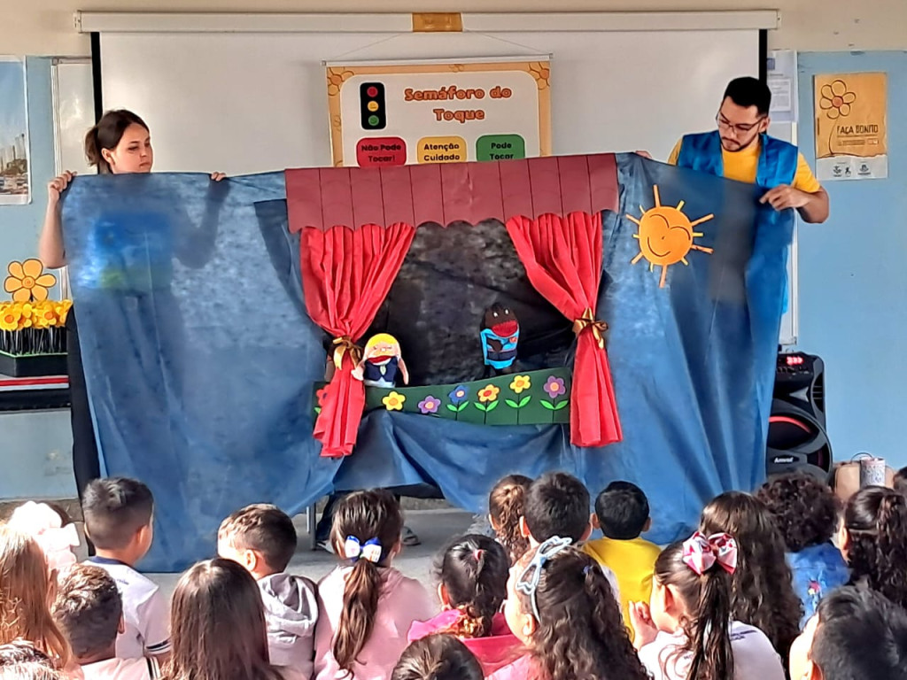 Programa "Criança Feliz" realiza atividades em escola municipal para conscientizar sobre o abuso e exploração sexual de crianças e adolescentes.
