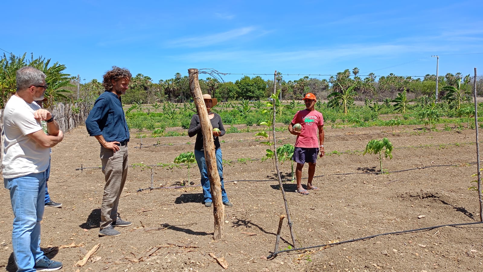 Durante a visita, a comitiva esteve na Unidade de Produção Orgânica de Francedi e Jon Leno, produtores e sócios da Associação de Produtores Orgânicos de Mossoró (Aprofam), onde foi possível conhecer práticas produtivas agroecológicas e iniciativas de certificação participativa.