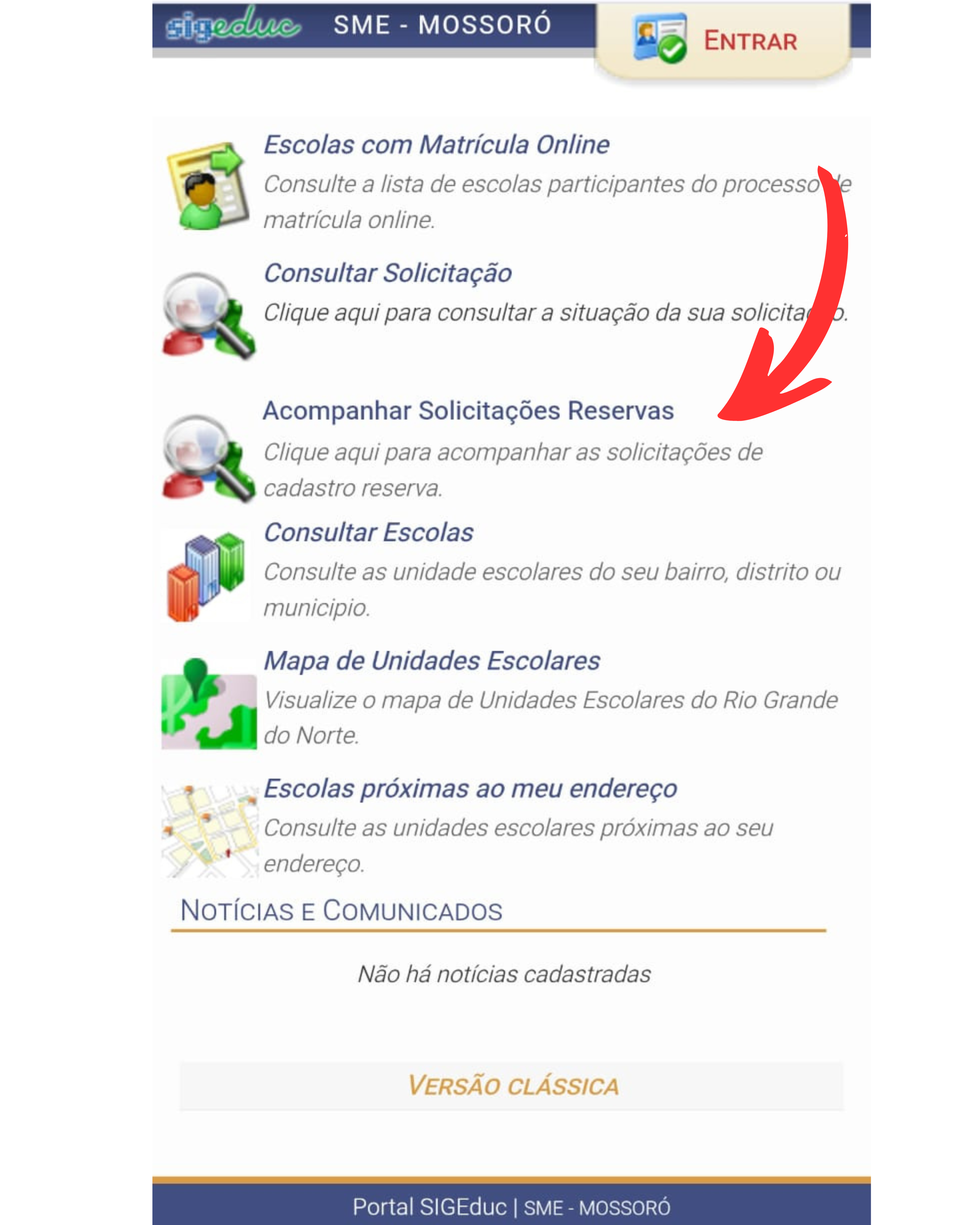 Ao acessar o Sigeduc, via portal da Prefeitura de Mossoró, o próximo passo é clicar em: