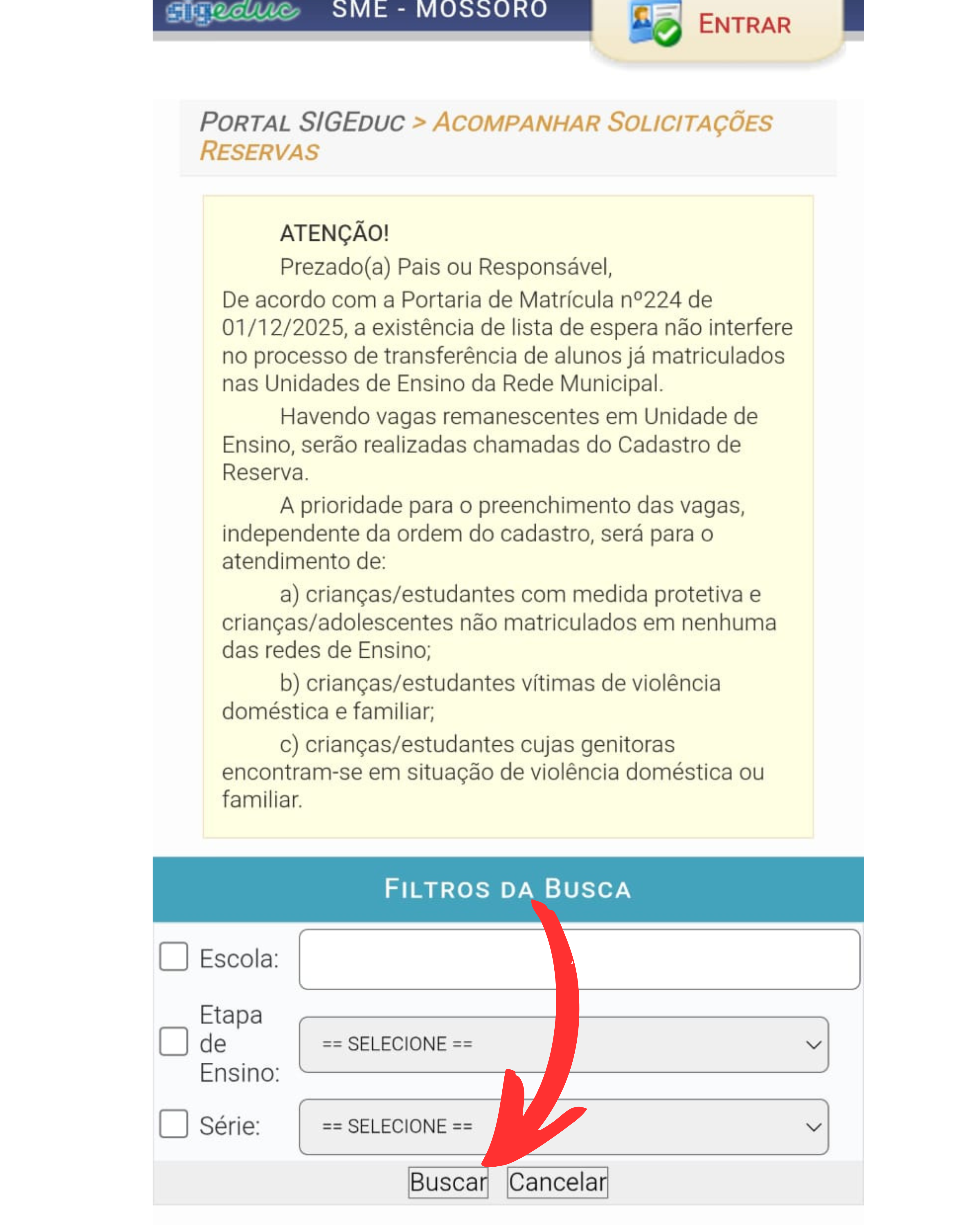 As informações podem ser adquiridas através do Sigeduc, onde é possível consultar a lista de espera do cadastro reserva nas unidades de ensino