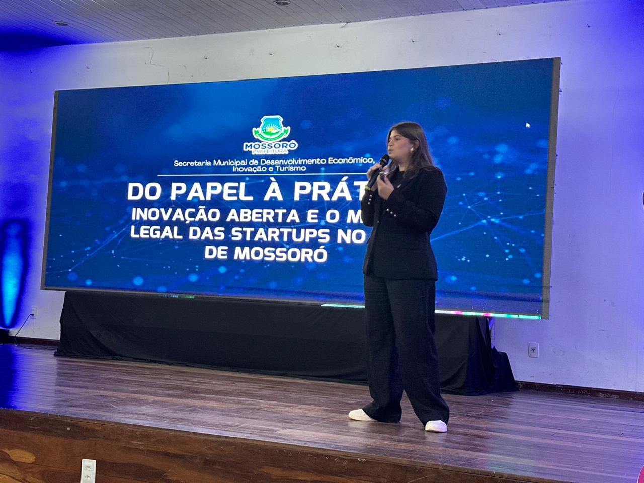 Abordando o tema “Do papel à prática: editais de inovação aberta e o marco legal das Startups no país de Mossoró”, Evillin Santana, gerente executiva de inovação, representou a Prefeitura de Mossoró no evento.