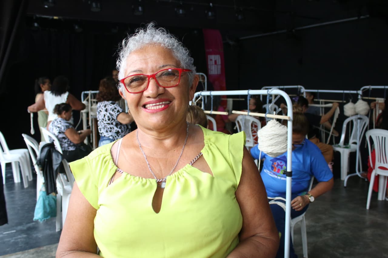 Maria Gorete demonstra estar muito feliz pela oportunidade de aprender algo novo. “Eu ainda não sei nada de macramê, mas estou muito feliz de poder aprender aqui nessa oficina. Espero que apareça muitas outras oportunidades para nós, concluiu.